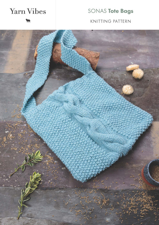The Sonas Tote Bag, crafted with aran weight yarn, showcases a striking central cabled braid, exuding timeless charm. Its textured knit adds depth and sophistication, perfect for everyday use.